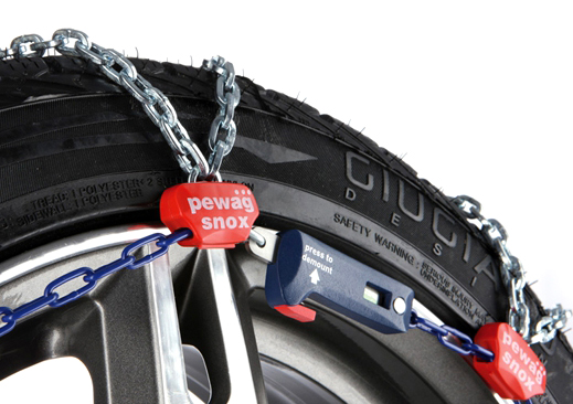 Pewag Snox pro - це єдині у своєму роді ланцюги на колеса, що не потребують трудомісткого монтажу. Вони дуже легко надягаються на колесо. Завдяки винаходу інженерів Pewag, надіти ланцюги Snox pro на колесо так же просто, як і надіти капелюх! Унікальна система натягу ланцюгів на колеса Pewag Snox pro дозволяє здійснювати монтаж ланцюга на колесо без кілець і гаків, без додаткового натягу ланцюга. При поїздках особлива система Pewag Snox pro здійснює блокування кільця, таким чином регулюється ступінь натягу ланцюга. Після повного гальмування кільце виходить з блоку і ланцюг дуже легко зняти.