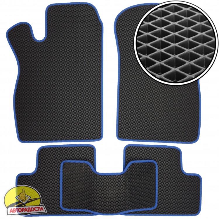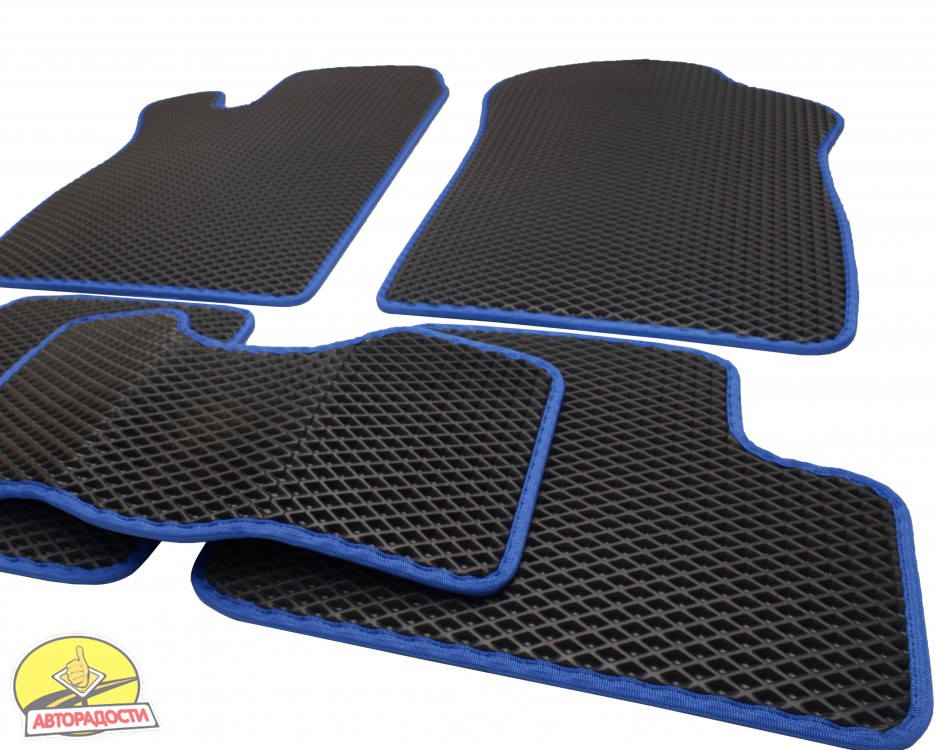 - Килимки в салон для Lada (Ваз) 2113-15 '97-12, EVA, чорні з синьою тасьмою (Kinetic)