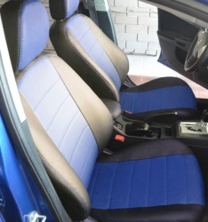 - Авточохли з екошкіри S-LINE для салону Mitsubishi Lancer X (10) '07-12, мотор 2. 0, синя вставка (AVTO-MANIA)